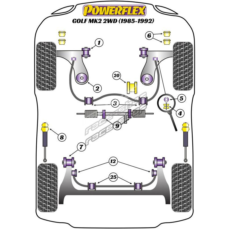 Powerflex Power Steering Rack Mount Volkswagen Golf MK2 2WD (1985 - 1992)