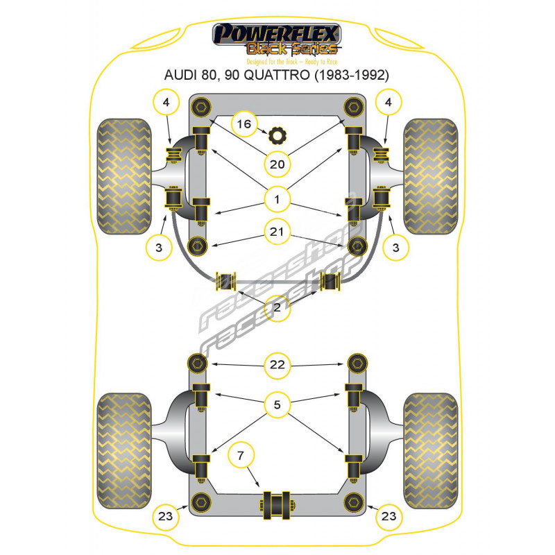Powerflex Bucșă exterior jos bară antiruliu 16mm Audi 80, 90 Quattro inc Avant S2 Coupe B3