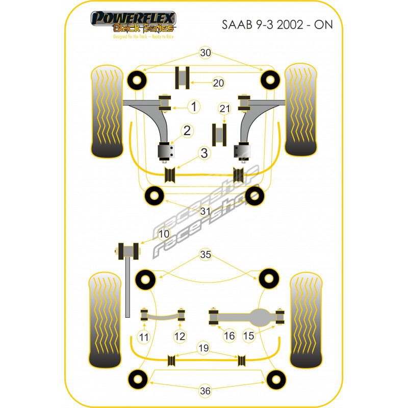 Powerflex Bucșă exterior braț spate jos Saab 9-3 (2003-2014)