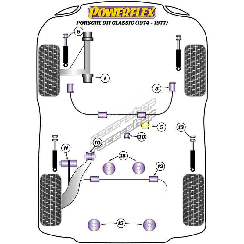 Powerflex Bucșă bară antiruliu față 22mm Porsche 911 Classic (1974-1977)