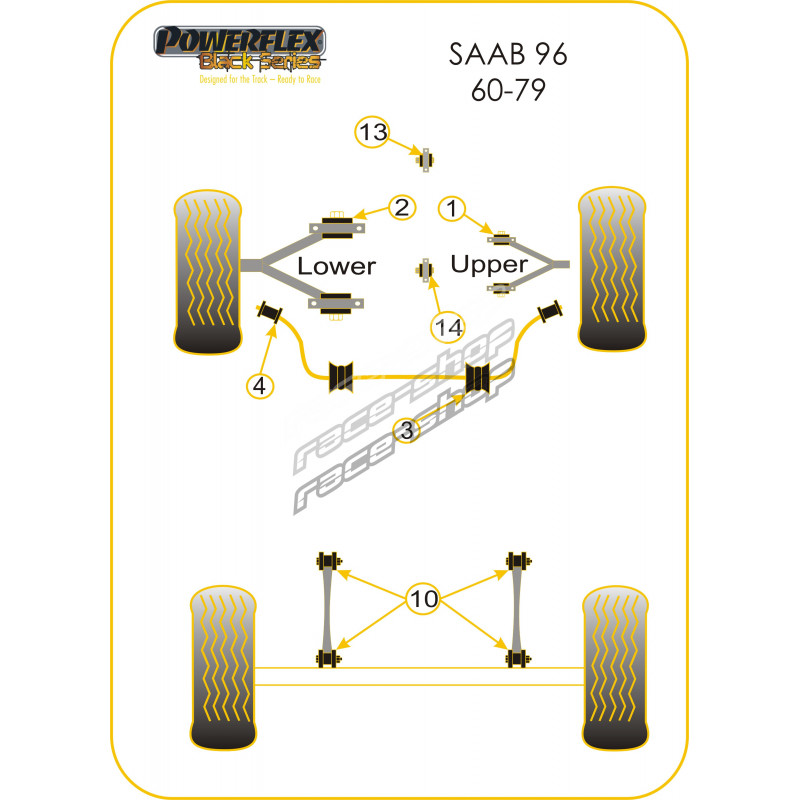 Powerflex Bucșă braț față superior Saab 96 (1960-1979)