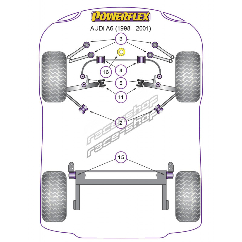 Powerflex Bucșă spate bară rigidizare față Audi A6 (1998 - 2001)
