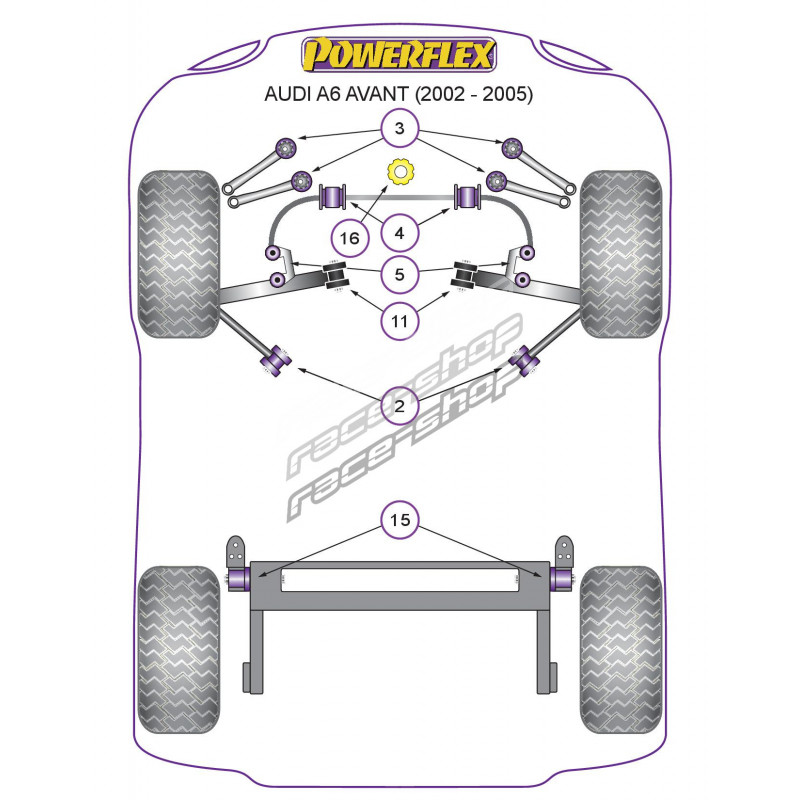 Powerflex Bucșă spate bară rigidizare față Audi A6 Avant (2002 - 2005)