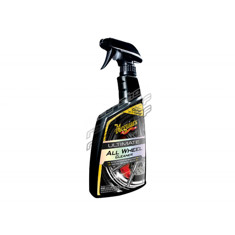 Meguiar 's Ultimate All Wheel Cleaner conține aditivi care, atunci când intră în contact cu impuritățile pe bază de fier (Fe), roșesc produsul . Acest efect nu este o dovadă a efectului produsului, ci doar un indicator al faptului că murdăria de pe roțile tale conține fier. Dacă roțile tale sunt foarte murdare, dar nu conțin impurități de fier, produsul nu va fi colorat, dar totuși le va curăța perfect suprafața de toate impuritățile rămase.