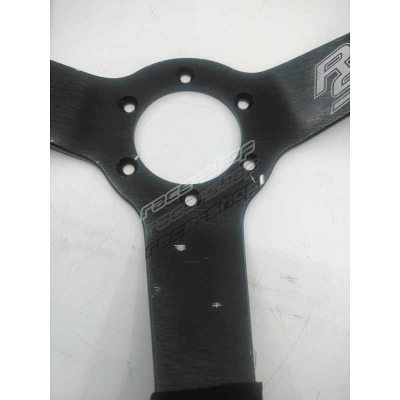 Volan sport cu 3 spițe RACES MOTORSPORT, 350mm, piele întoarsă, adâncime 65mm DETERIORAT