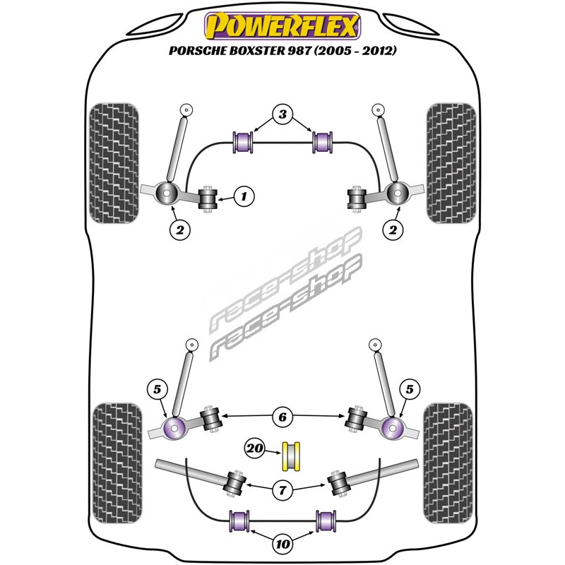 Powerflex Bucșă tampon motor față Porsche Boxster 987 (2005-2012)