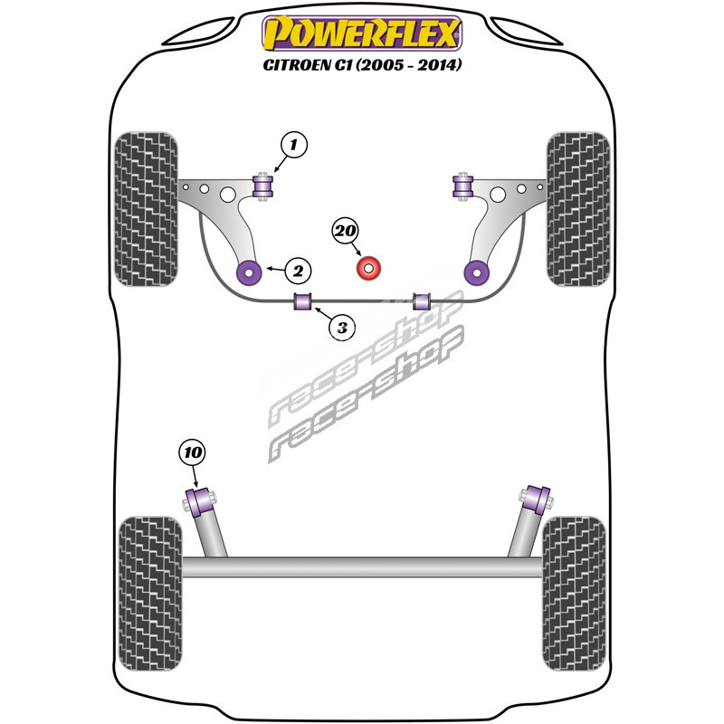 Powerflex Bucșă tampon motor inferior Citroen C1 (2005 - 2014)