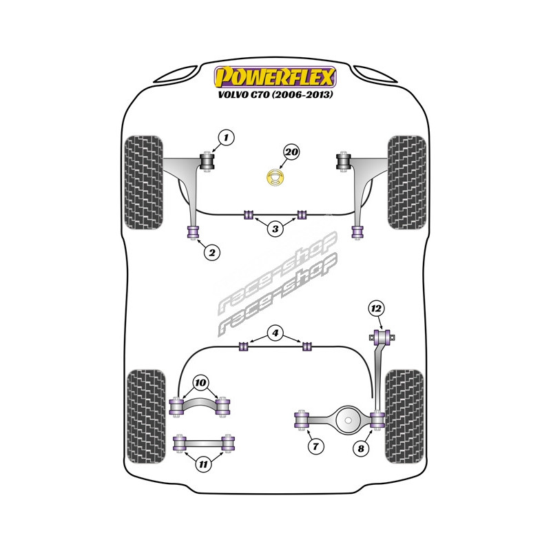 Powerflex Bucșă tampon jos, suport & bucșă, Race Volvo C70 (2006 - 2013)