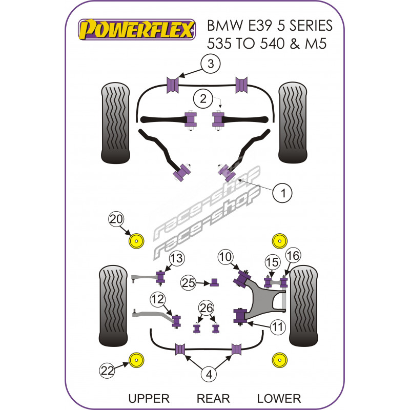 Notă: Această bucșă este montată pe vehiculele M5. Această bucșă se potrivește la E39 seria 5 fără suspensie sport M modele și. E38 7 series.