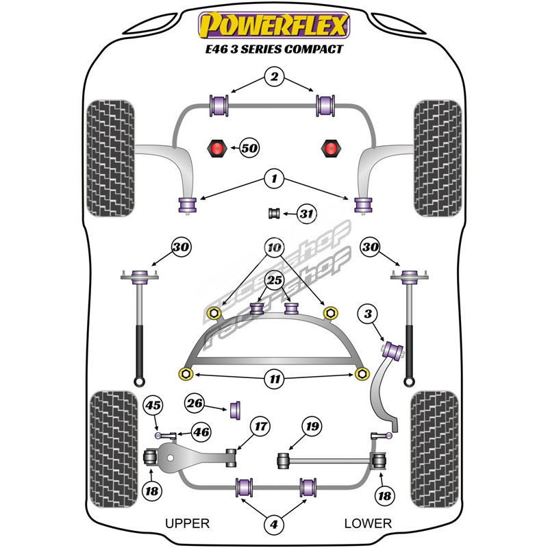 Powerflex Bucșă exterior braț spate inferior BMW 3 Series E46 (1999 - 2006) Compact