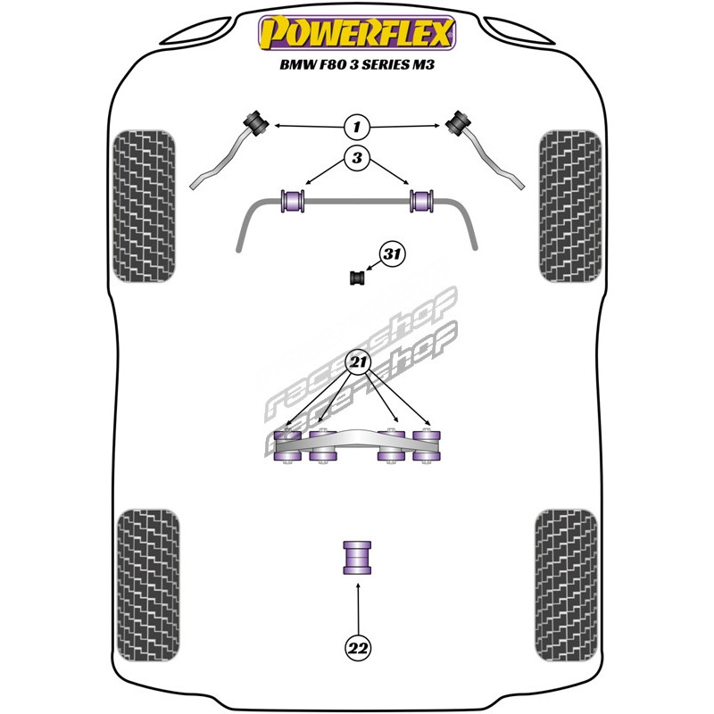 Powerflex Bucșă levier schimbător ovală BMW 3 Series F30, F31, F34, F80