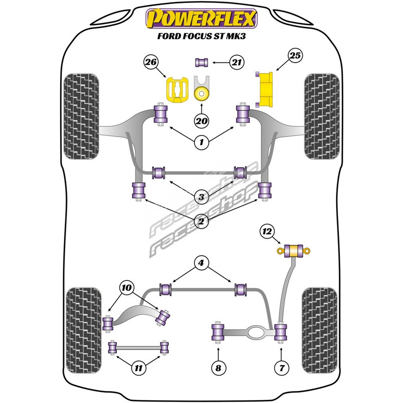 Powerflex Bucșă față braț față 14mm Ford Focus Mk3 ST