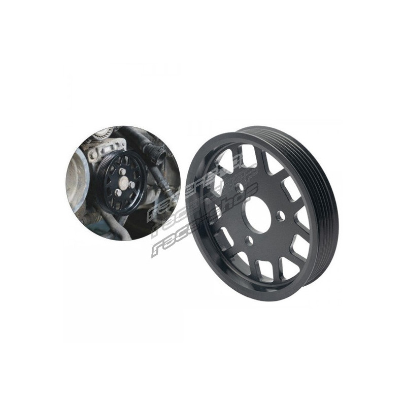 Versiune din aluminiu RACES a fuliei standard a servodirecției utilizate la motoarele M52, M52TU și M54. Această fulie înlocuiește direct cureaua și componentele din fabrică, îmbunătățește funcționarea și durata de viață..