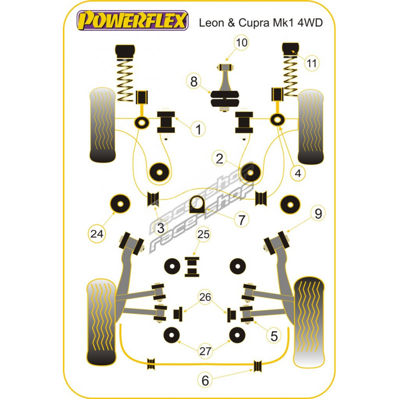 Powerflex Bucșă suport bară stabilizatoare spate 19mm Seat Leon & Cupra Mk1 Typ 1M 4WD (1999-2005)
