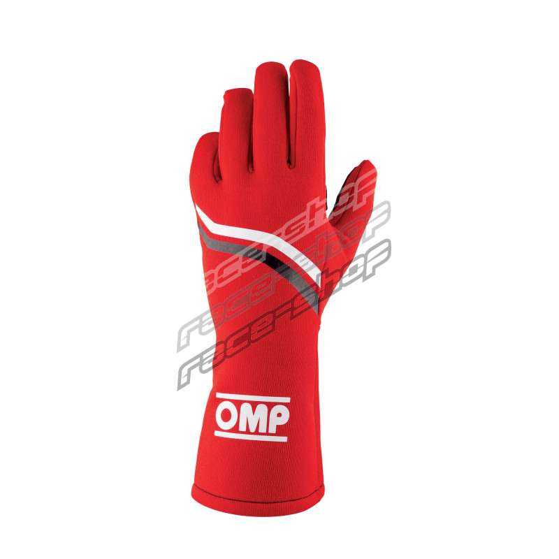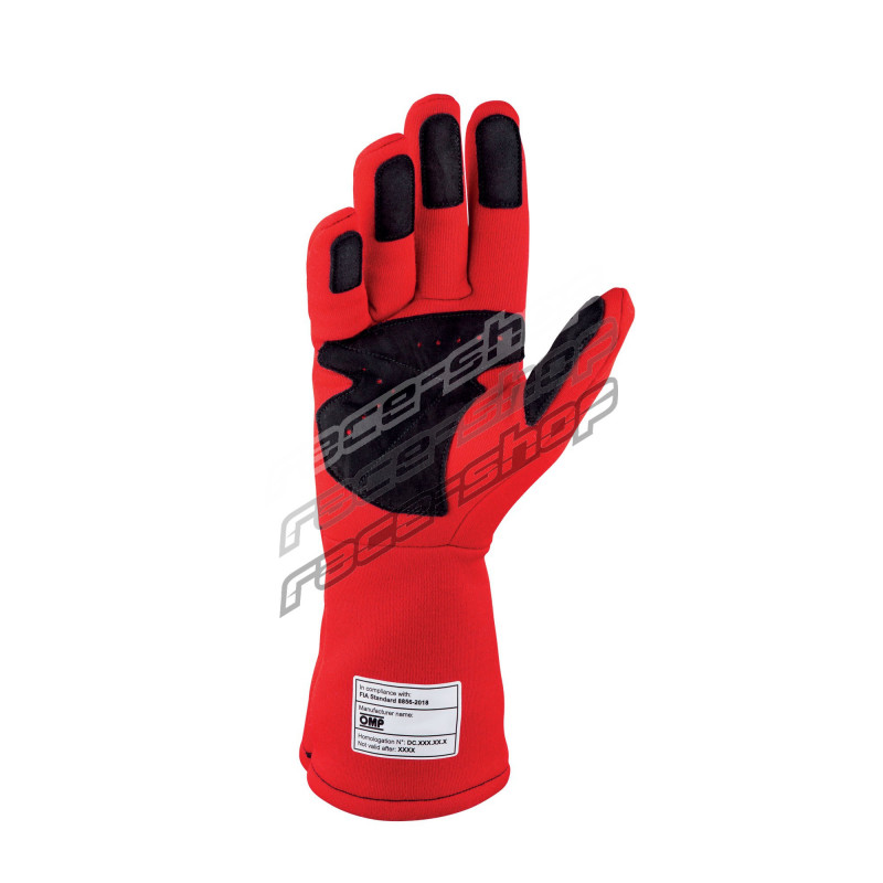 Mănuși de curse OMP DIJON my2025 cu FIA (cusături interioare) roșii cu dungi albe/negre