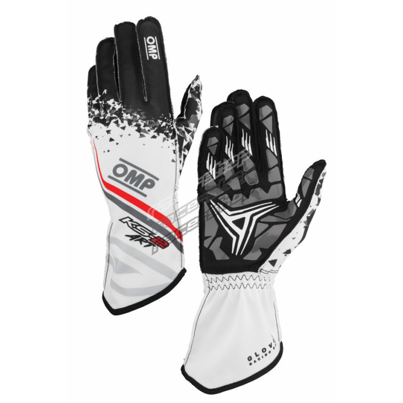 Mănuși de curse OMP KS-2 ART my2025 (cusături exterioare) alb/negru/roșu