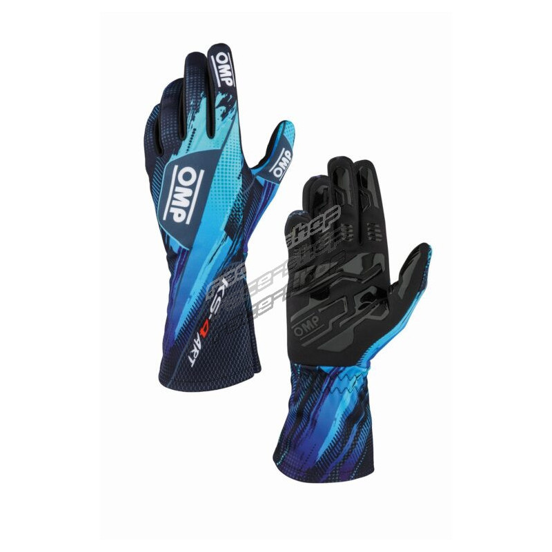 Mănuși de curse OMP KS-4 ART my2026 (cusături interne), negru/cian