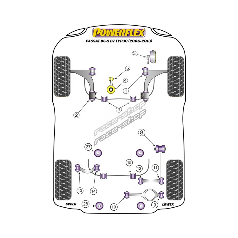 Powerflex Bucșă bară antiruliu spate 18.5mm Volkswagen Passat B6 & B7 Typ3C (2006-2013)