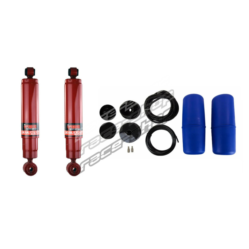 Ideal for work vehicles or recreational setups frequently transitioning between light and heavy loads, the kit includes Pedders TrakRyder Foam Cell shocks, heavy-duty rear leaf springs, high-grade mounting hardware, and manually adjustable airbags. This configuration offers precise control over rear ride height under varying load conditions without introducing excessive stiffness during unloaded operation.