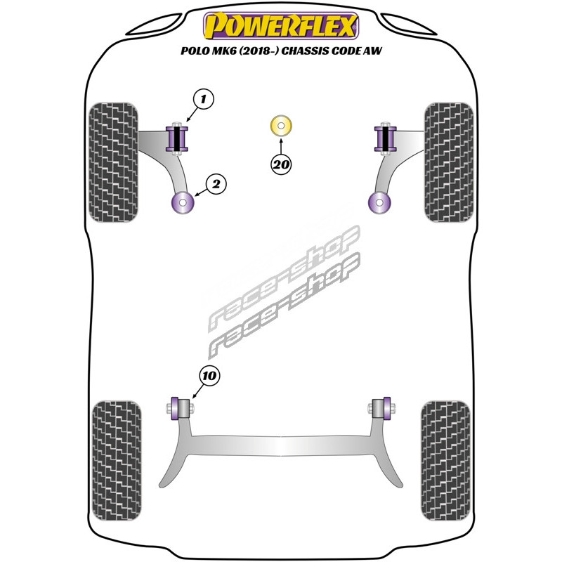 Powerflex Bucșă spate braț față Volkswagen Polo MK6 (2018 - ) Chassis Code AW