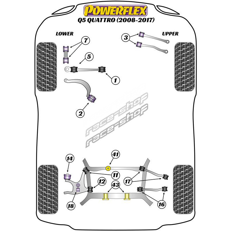 Powerflex Bucșă exterior pivoți direcție spate Audi Q5 Quattro (2008-2017)