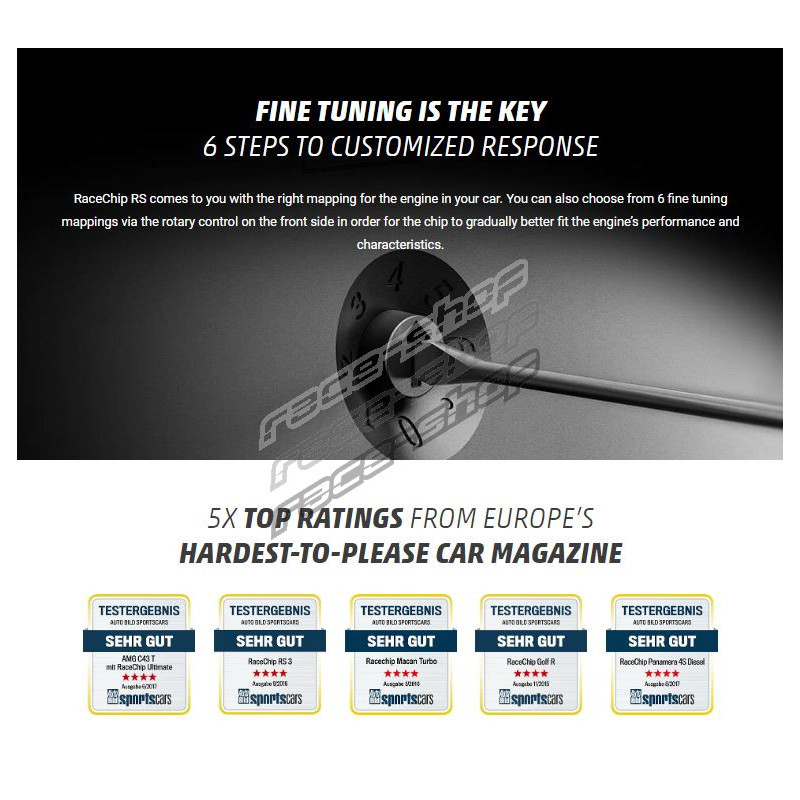 RaceChip® este o companie orientată din 1994 pe modificarea software-ului auto cu unități suplimentare. Aceste unități suplimentare sunt instalate între motor și calculatorului de bord. Funcția acestui produs este de a primi și evalua semnale (de câteva mii de ori pe secundă), apoi a le modifica pentru a crește și optimiza performanța. Instalarea este foarte simplă (în termen de 10-15 min) și fără pierderea garanției pentru vehiculele noi. Produsele companiei nu interferează cu sistemul de bază al mașinii, care menține active toate funcțiile originale. RaceChip® este certificat TÜV din 2009.