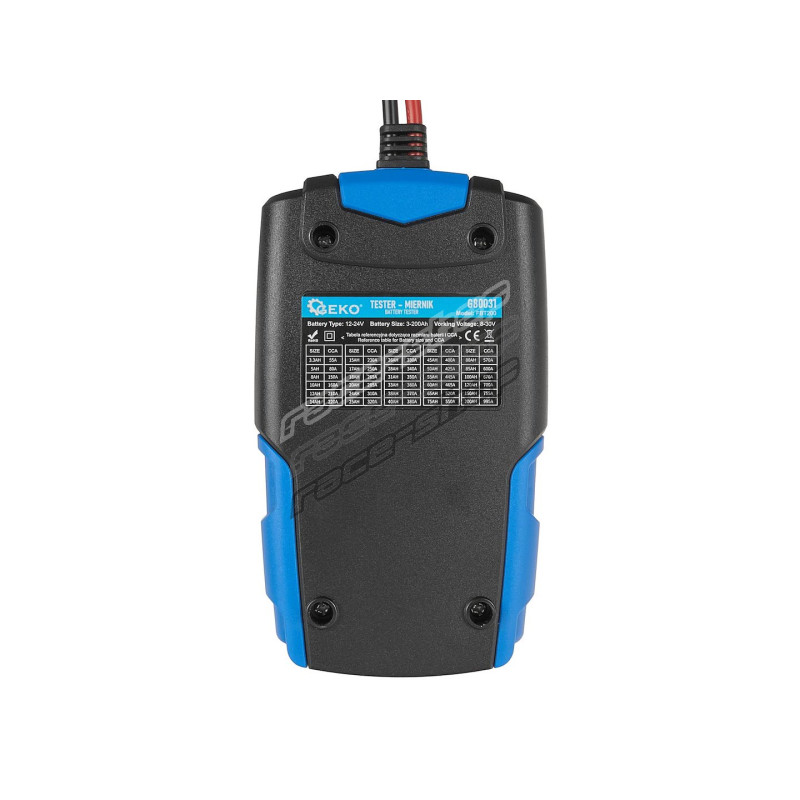 This battery tester is an advanced device designed for quick and precise testing of car batteries with voltages of 12V and 24V and capacities ranging from 3Ah to 200Ah. Equipped with a clear LCD display, it allows for instant reading of results and accurate assessment of the battery's condition. Thanks to its long measurement cables with durable alligator clamps, the tester is easy to use and ensures a stable connection with the tested battery. Whether you are a professional or a DIY enthusiast, this device is perfect for any battery check.