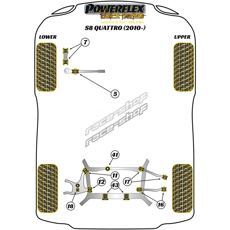 Powerflex Bucșă exterior pivoți direcție spate Audi S8 Quattro (2010 - )