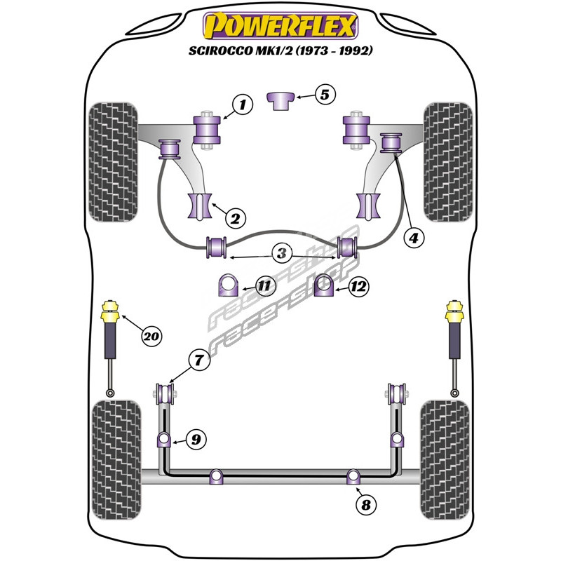 Powerflex Bucșă punte spate Volkswagen Scirocco MK1/2 (1973 - 1992)