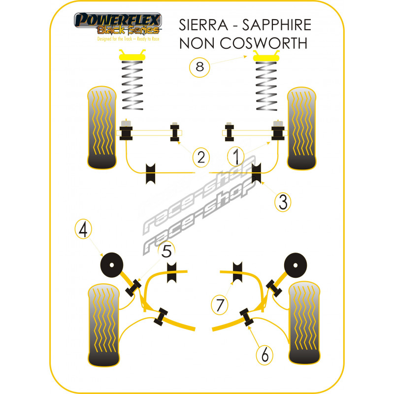 Powerflex Bucșă amortizor față Ford Sierra & Sapphire Non-Cosworth