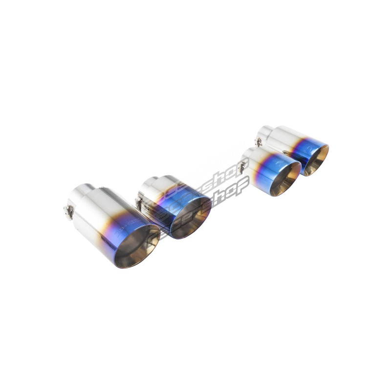 These tips are great if you looking to make a statement with you exhaust. The burnt blue coating looks vibrant and stands out from the standard polish stainless look.VW Golf R & Audi 8V S3 Hatch Burnt Blue Quad tips to suit the Xforce Varex valved cat back exhaust system. 2.5″inlet with 4″ outlets.