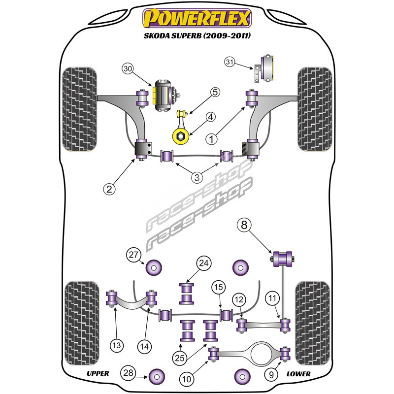 Powerflex Bucșă tampon motor sus Skoda Superb (2009-2011)