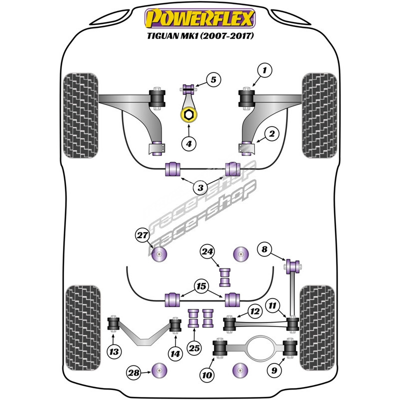 Powerflex Bucșă tampon motor inferior (mică) Volkswagen Tiguan MK1 (2007 - 2017)