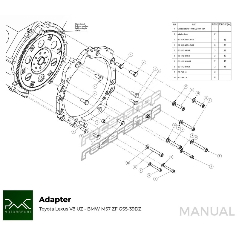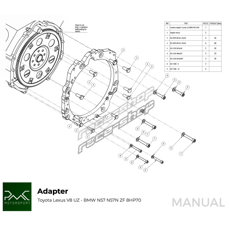 Placă adaptoare cutia de viteze Toyota UZ - Manual / automatic DCT 8HP BMW
