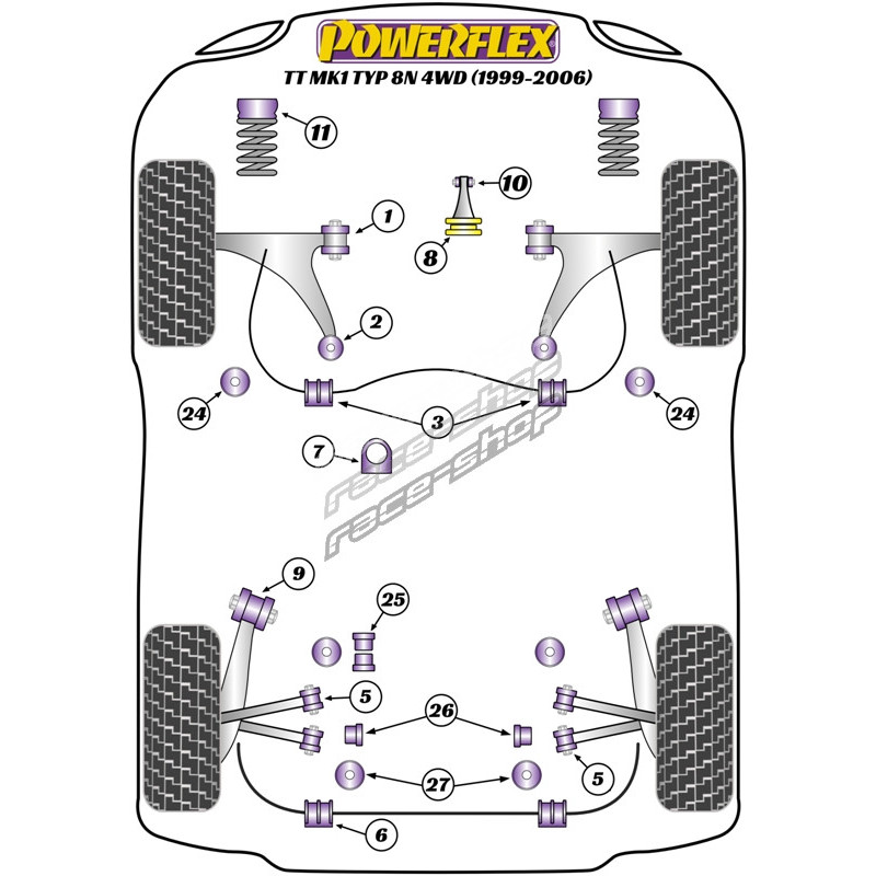 Powerflex Bucșă față braț față 30mm camber reglabil Audi TT Mk1 Typ 8N 2WD (1999-2006)