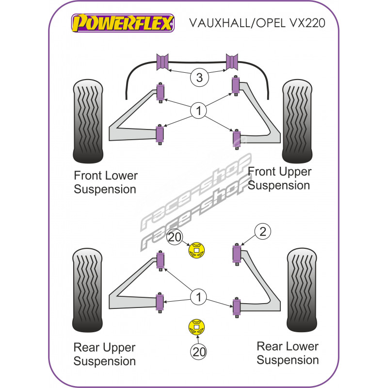 Powerflex interior Bucșă braț spate Opel VX220 (Opel Speedster)