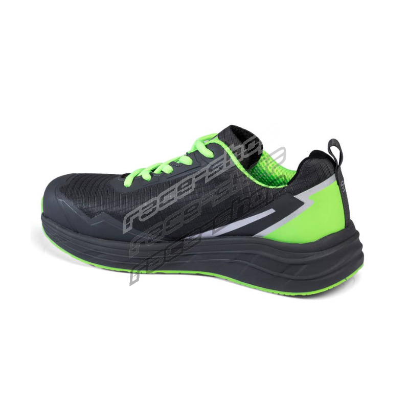 Încălțăminte de siguranță de tip running. Partea superioară fără sudură este fabricată dintr-un material rezistent la apă, cu detalii anti-abraziune din tpu și detalii 3D hf. Talpă intermediară din EVA și talpă din cauciuc „fo+hro”. Ușoare, versatile și rezistente, sunt pregătite pentru orice provocare.